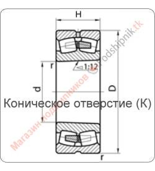 Допускают значительный перекос внутреннего кольца (вала) относительно наружного кольца (корпуса) и регулировку радиального зазора. Подшипник соответствует стандарту ГОСТ 5721-75. Коническая посадка (К). Латунный сепаратор.