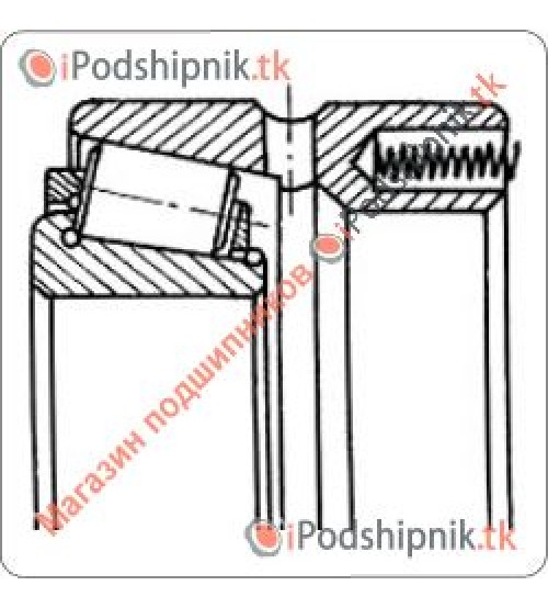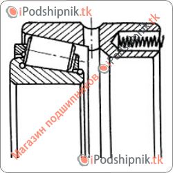 Однорадный роликовый подшипник, конический (или подшипник с коническими роликами) ТУ 37.006.133. Угол контакта, у конических подшипников составляет от 10 до 18°, что позволяет эксплуатировать их в условиях высоких радиальных и осевых нагрузок.