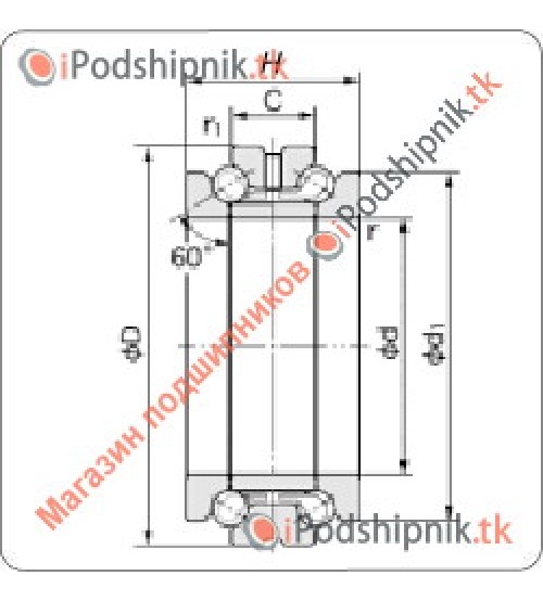Тип подшипника: шариковый радиально-упорный двухрядный