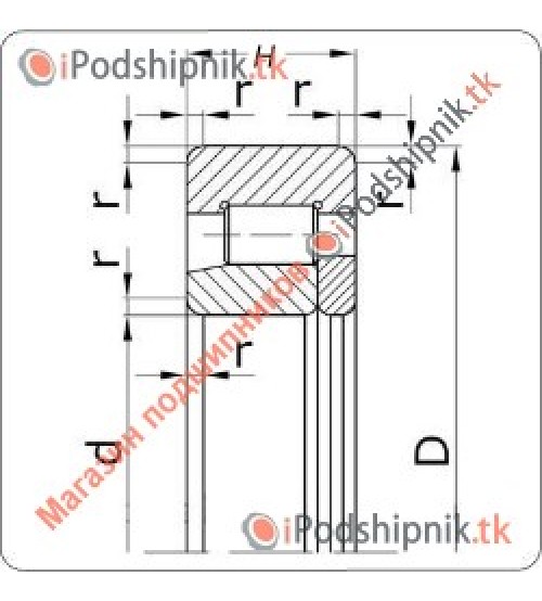 Латунный сепаратор (Л). Подшипник качения роликовый радиальный с короткими цилиндрическими роликами однорядный с безбортовым внутренним кольцом и плоским упорным кольцом.