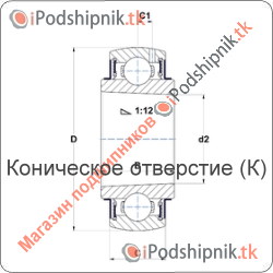 Обычно применяется с втулкой. Имеет сферический наружный диаметр, конусное цилиндрическое отверстие, уплотнение с маслоотражателем.