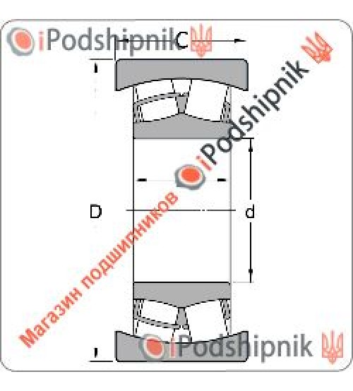 Роликосферический бочкообразный подшипник. Наружная обойма шире внутренней. Альтернативные наименования: F-801806.PRL